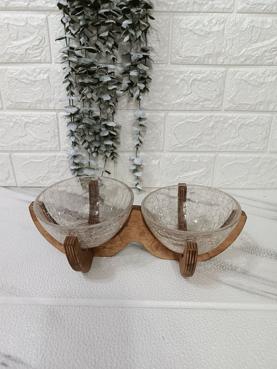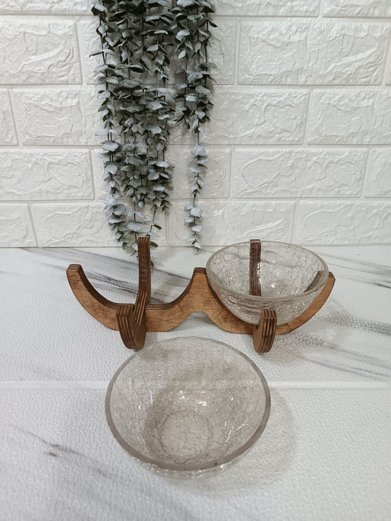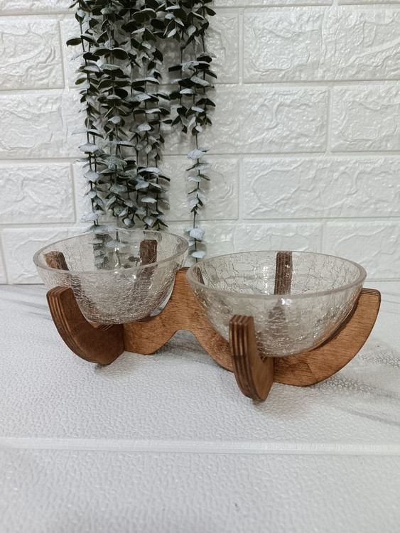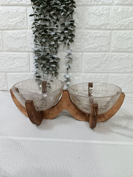 شامل دو عدد کاسه ترک و پایه چوبی از جنس چوب روس، به عنوان شکلاتخوری،اجیل خوری و ظرف هفتسین میتونید ازش استفاده کنید