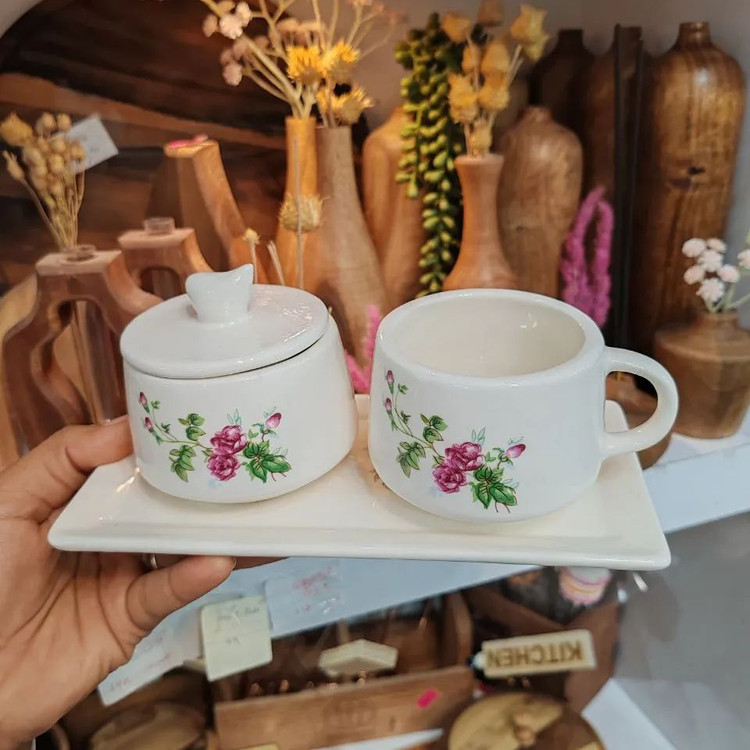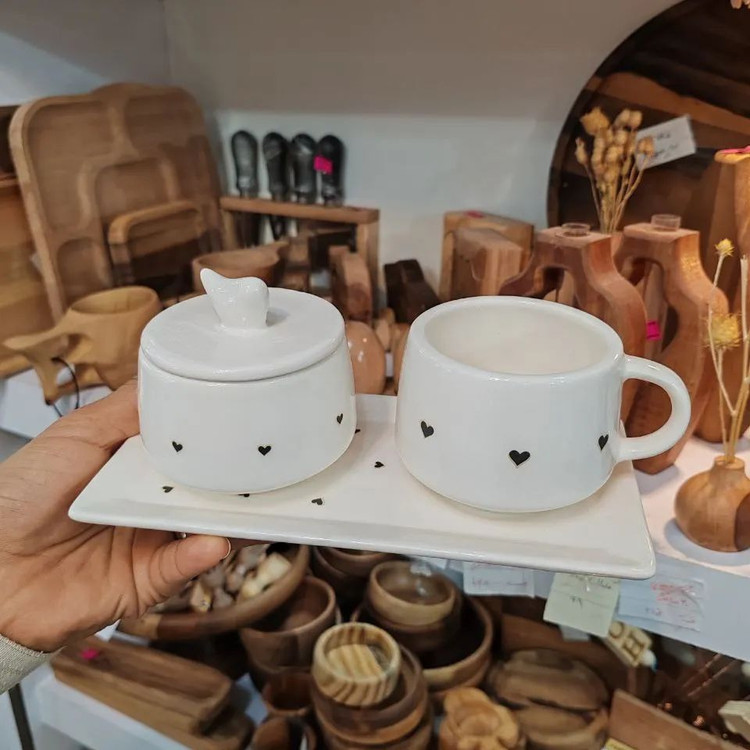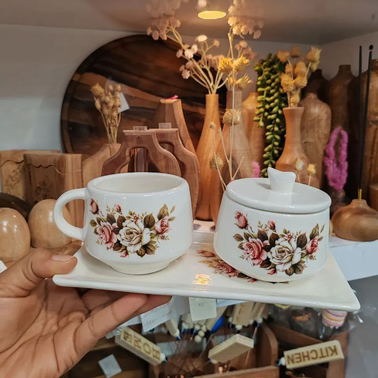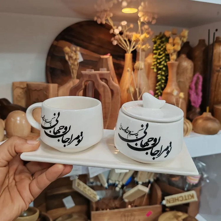 ست چایخوری سرامیکی مخصوص خوش سلیقه های پیجمون جنس:سرامیک دستساز شامل یک عدد فنجان چایخوری،قندان،سینی تمامی کارهای دستساز سه بار داخل کوره در دمای 1080درجه قرار گرفته و به همین دلیل، مقاوم نسبت به لب پر شدن مقاوم به شستشو مقاوم به سرد و گرم شدن ضمانت داره و اگه نوشته هایش پاک شد تعویض میکنیم عالی فقط 275هزار