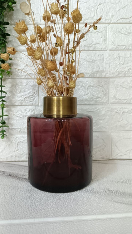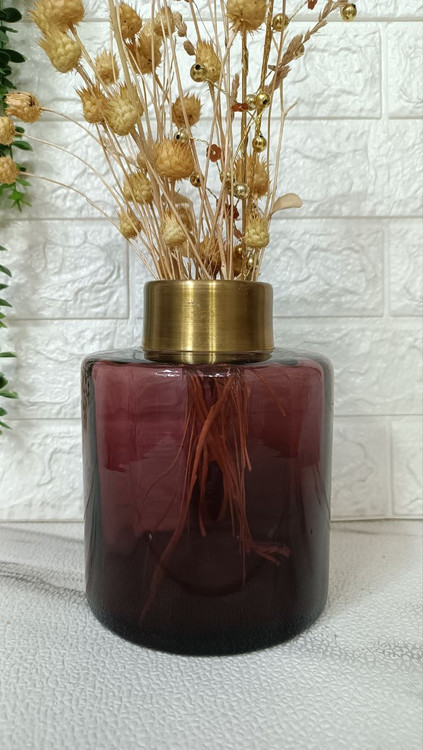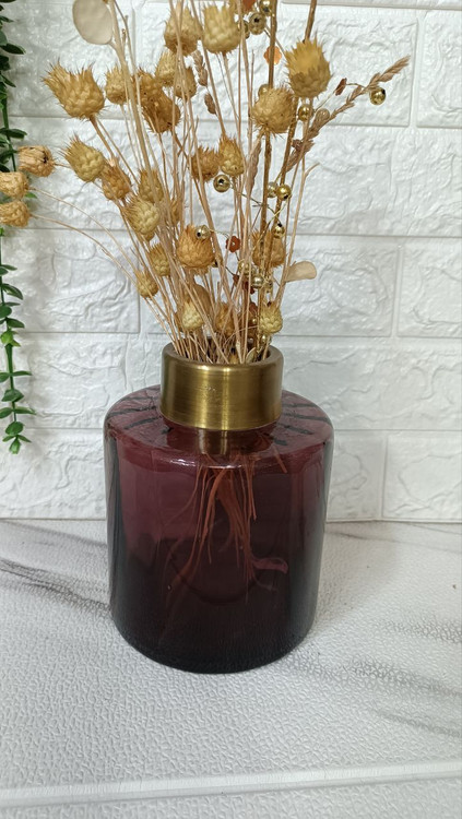 این گلدان دست ساز میباشد دارای گردن از جنس برنج با رنگ ثابت